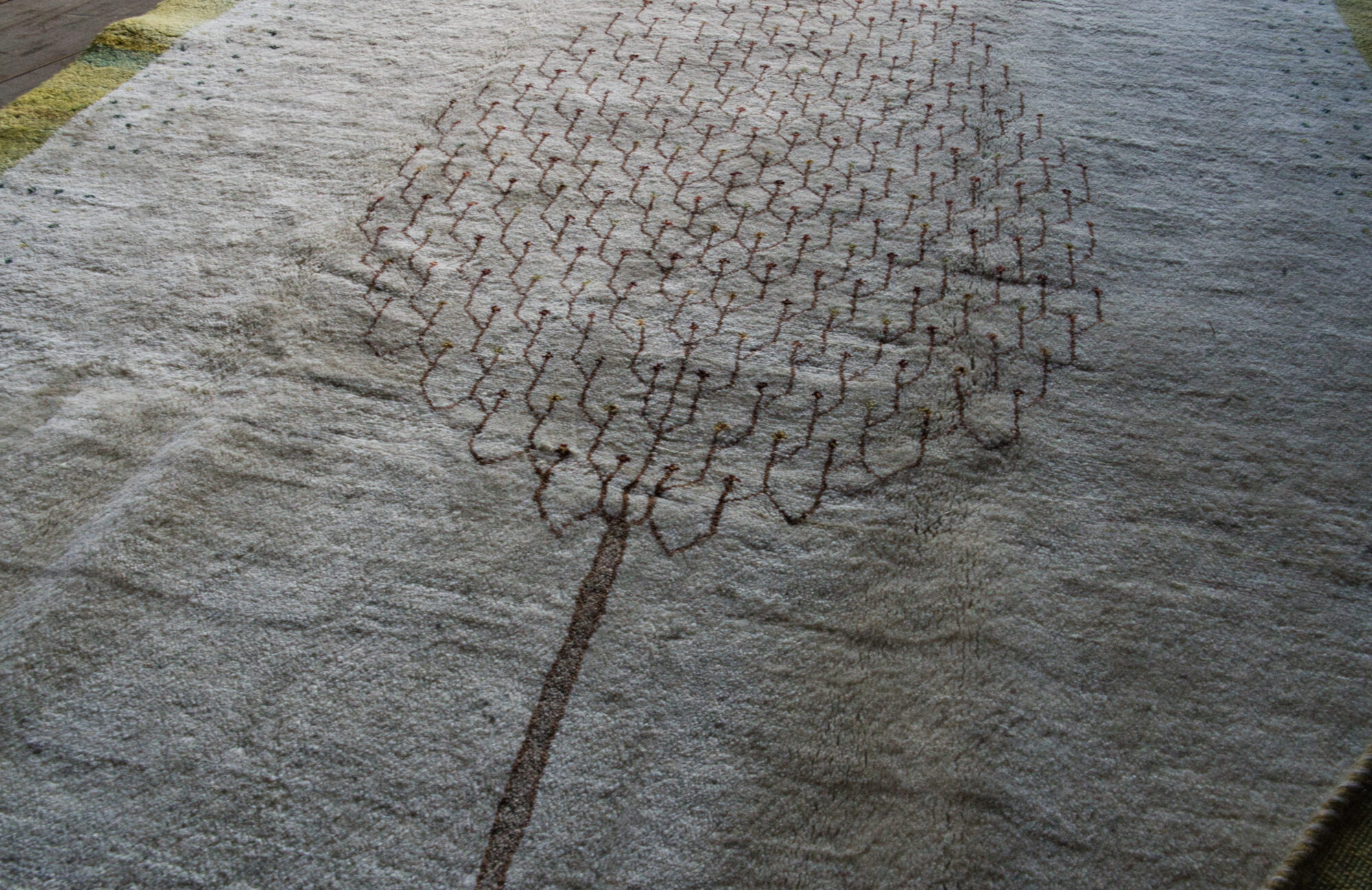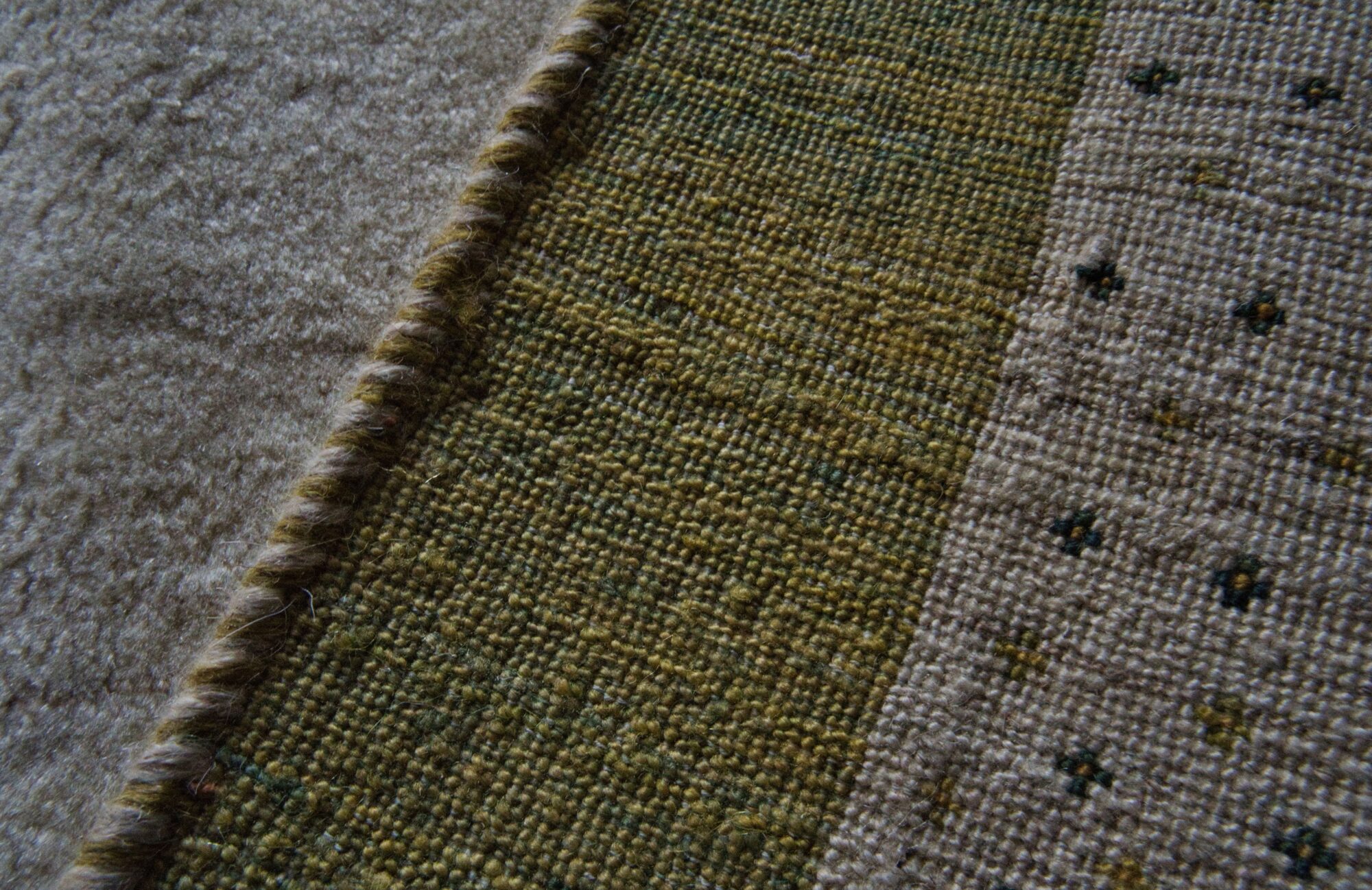 柔らかな生成りを基調とした優しい雰囲気が魅力の、ローリーバフト手織りギャッベです。